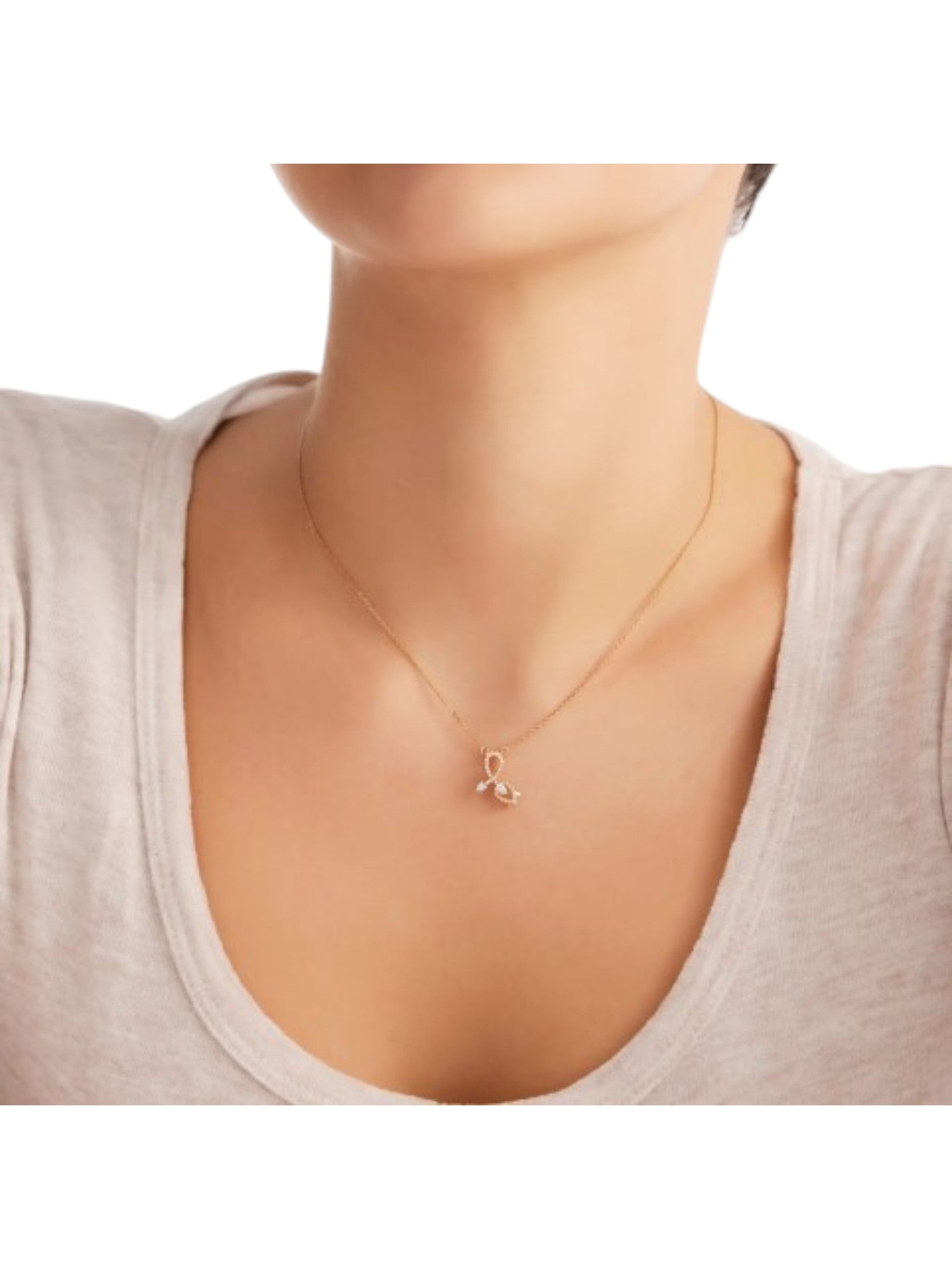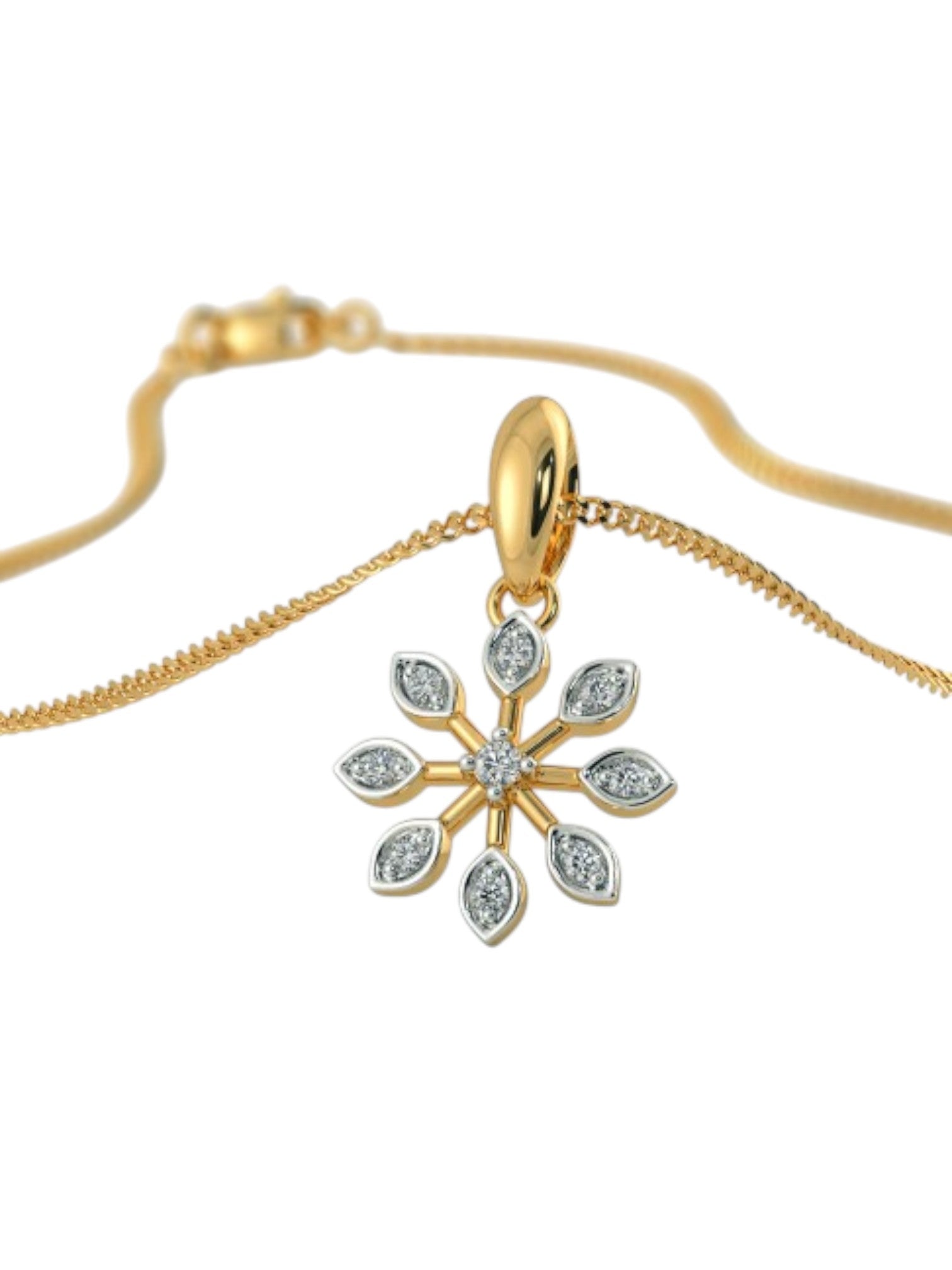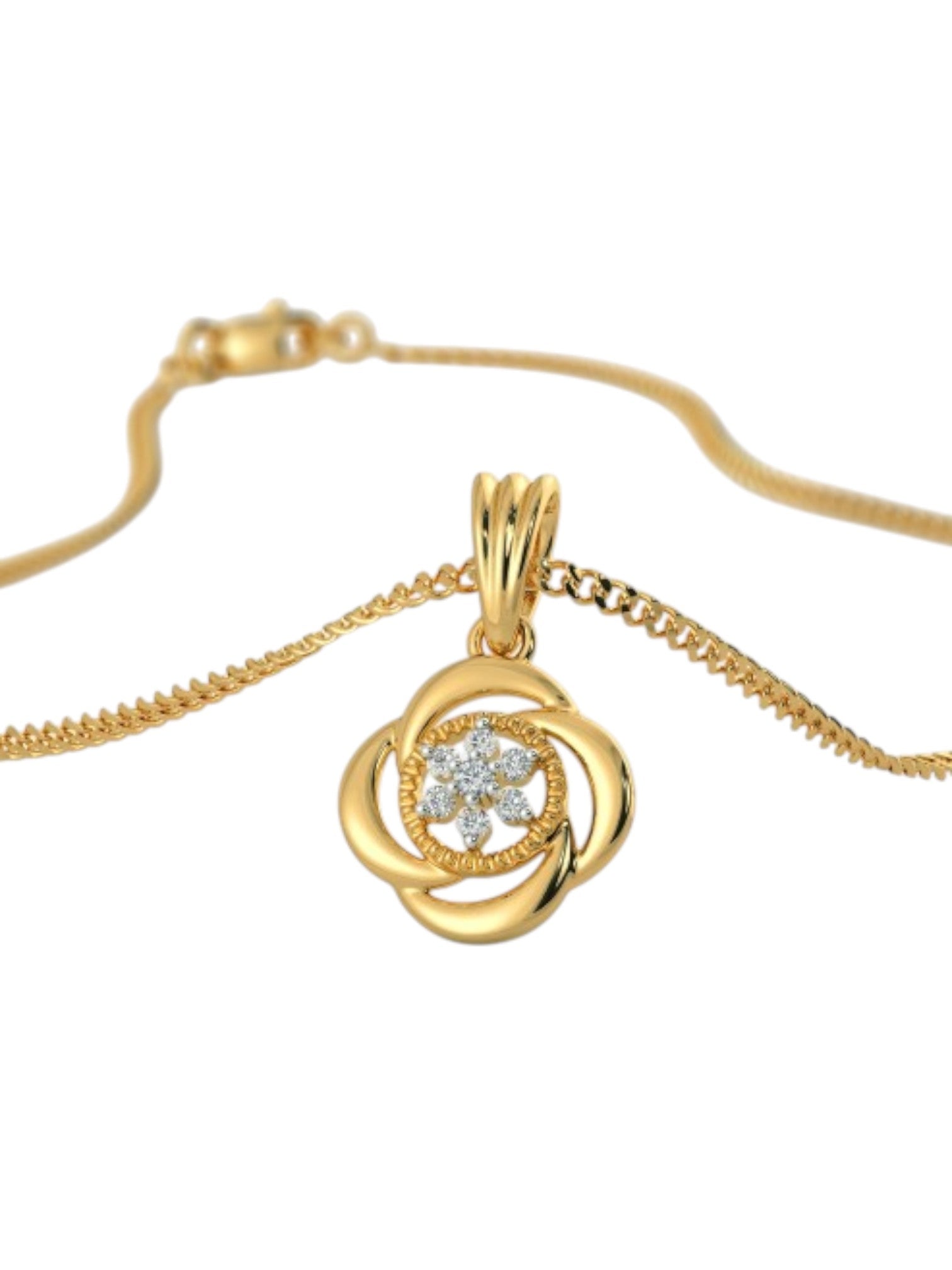 925 Sterling Silver Minimal Tulip Design CZ Stones Rose Gold Plated Pendant With Chain For Women Kesardeep