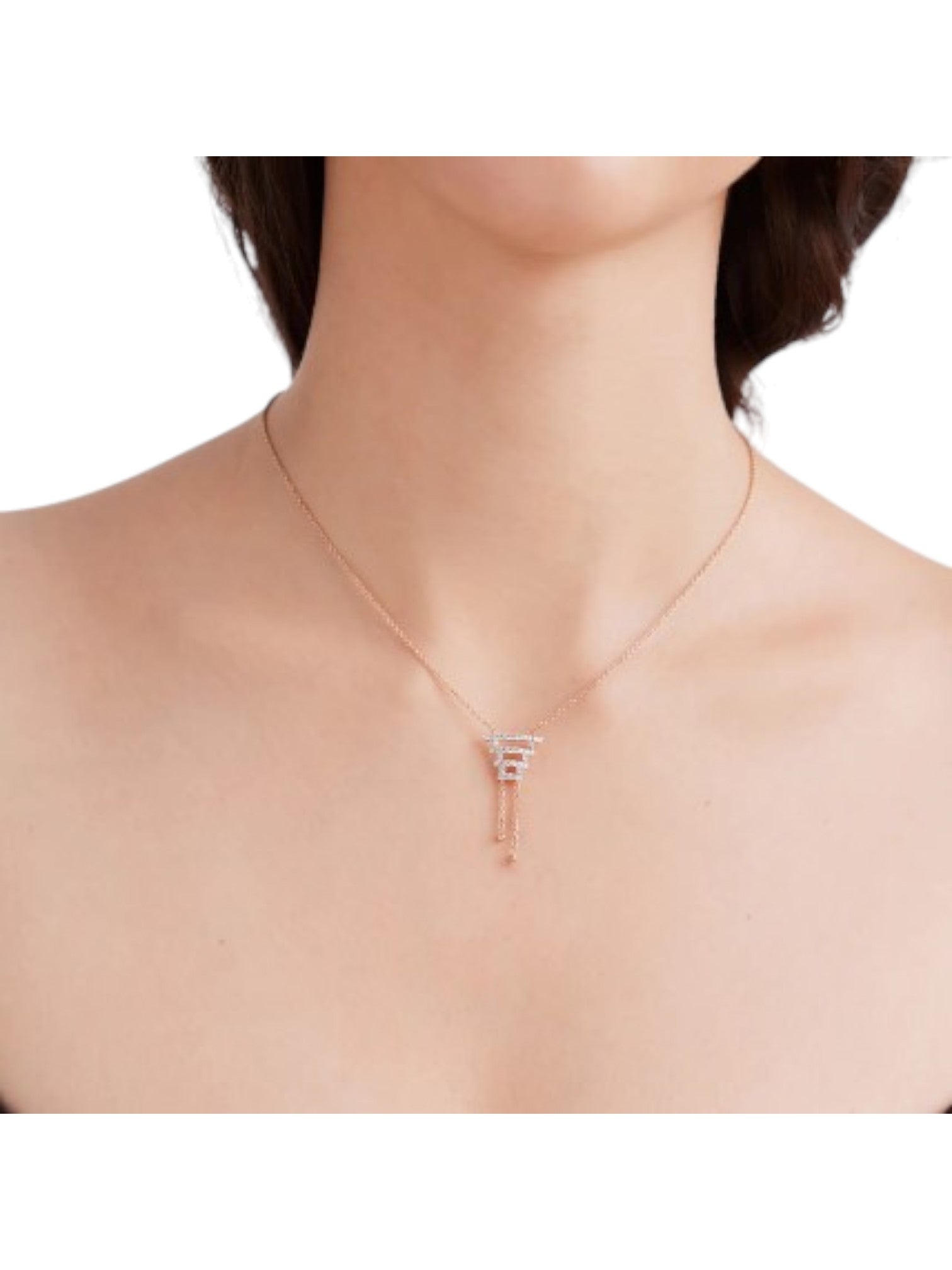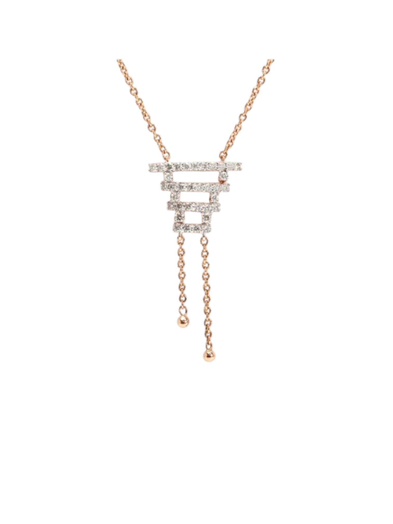 925 Sterling Silver Minimal Ladder Design CZ Stones Rose Gold Plated Pendant With Chain For Women Kesardeep