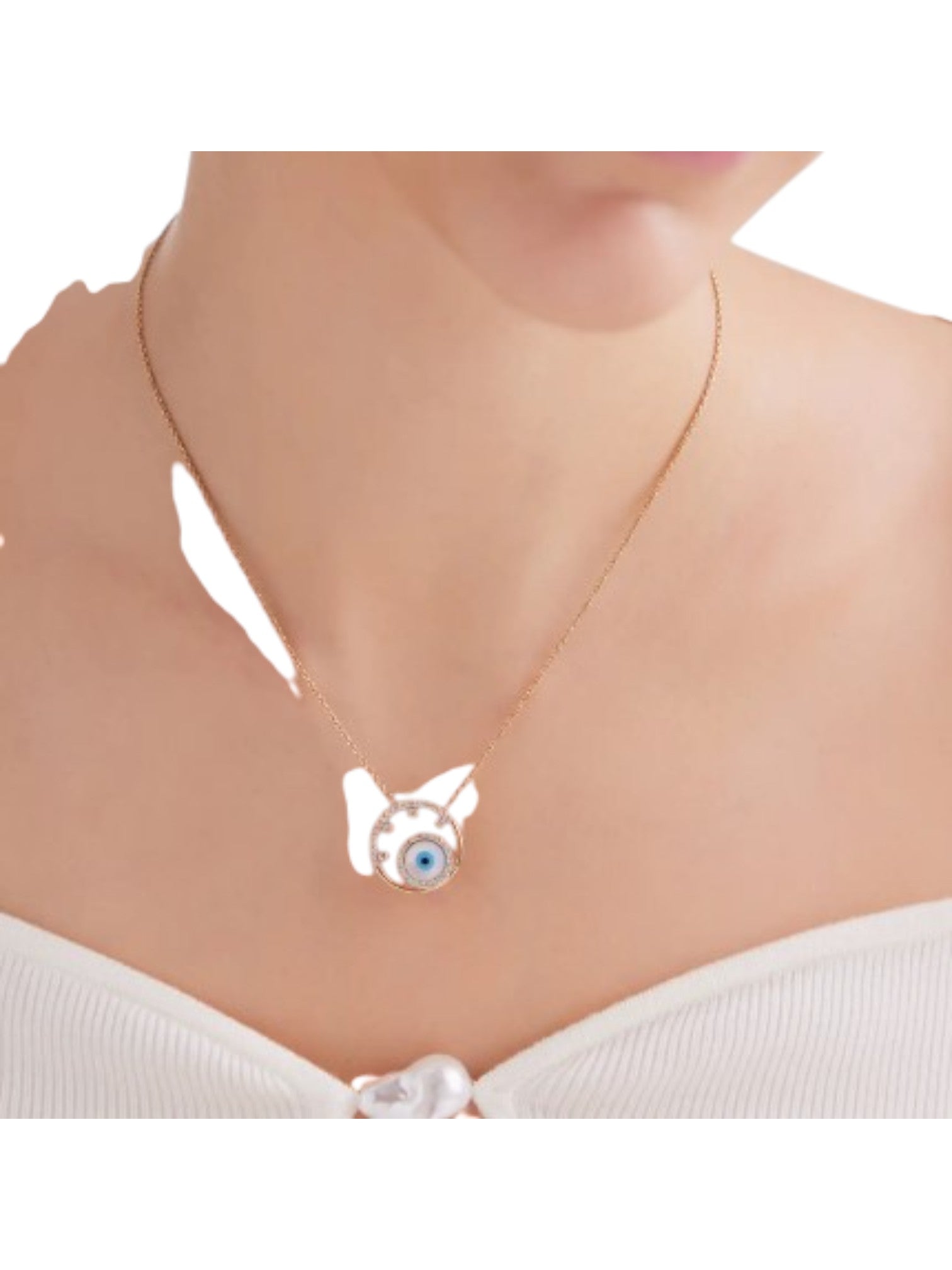 925 Sterling Silver Minimal Evil Eye Design CZ Stones Rose Gold Plated Pendant With Chain For Women Kesardeep