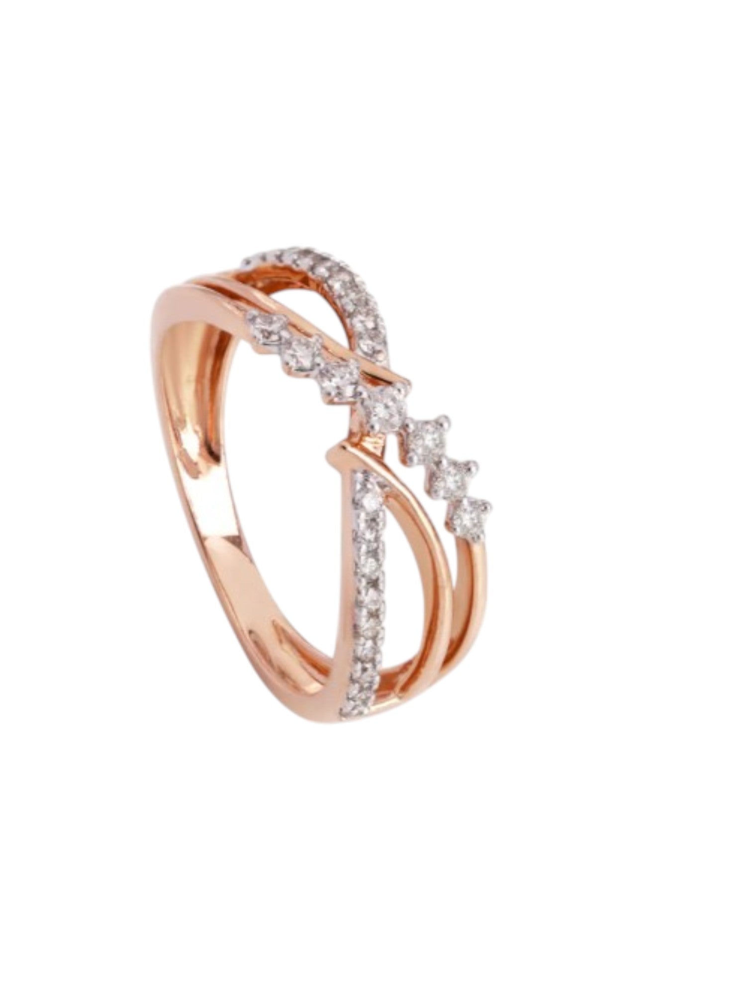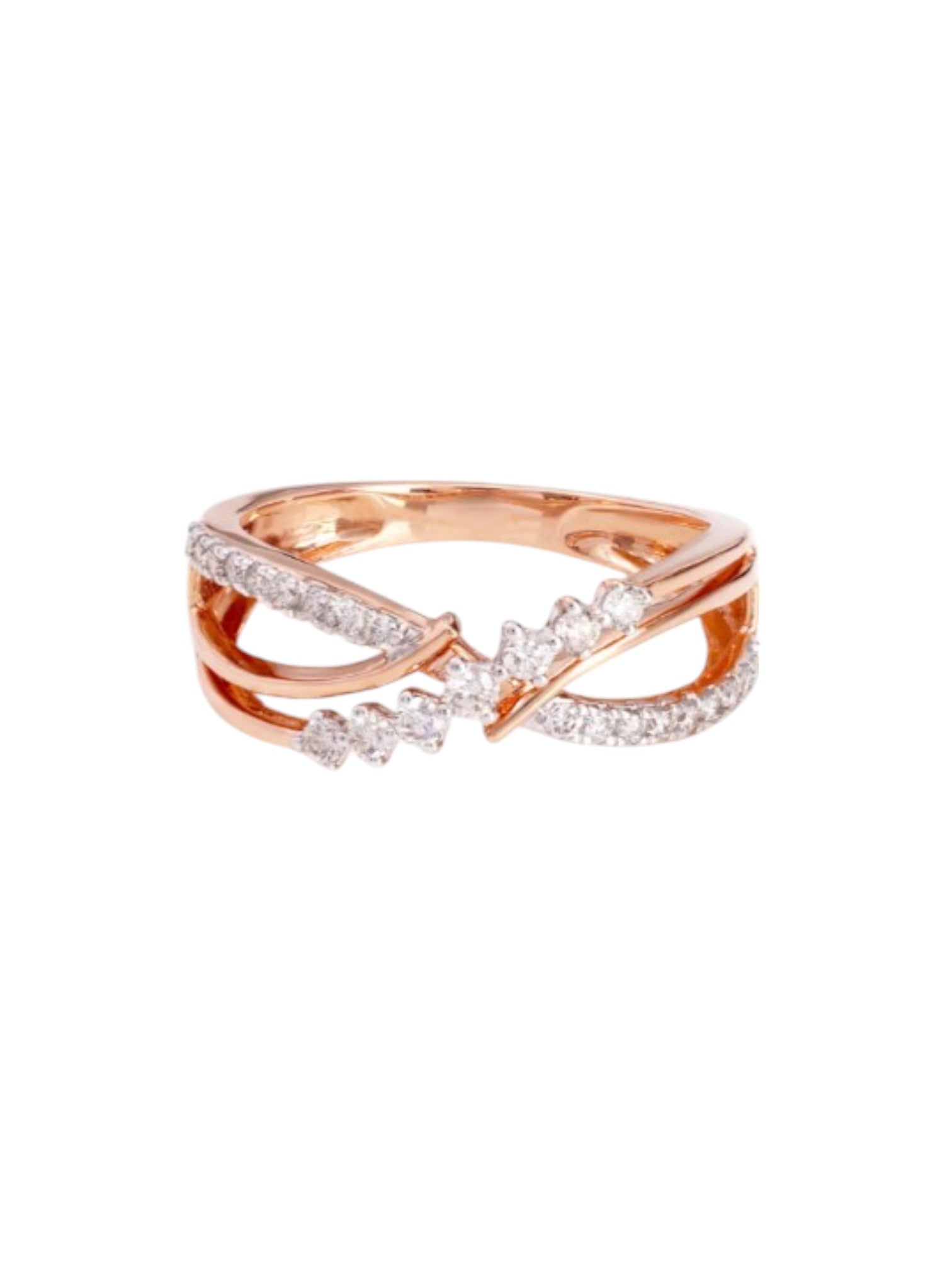 925 Sterling Silver Rose Gold Plated Light Weight CZ Stone Criss-Cross Ring For Women By Kesardeep