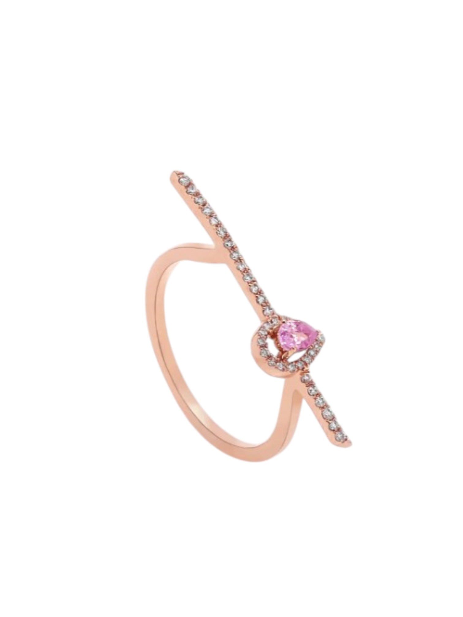 925 Sterling Silver Rose Gold Plated Light Weight CZ Stone Adjustable Heart Ring For Women By Kesardeep