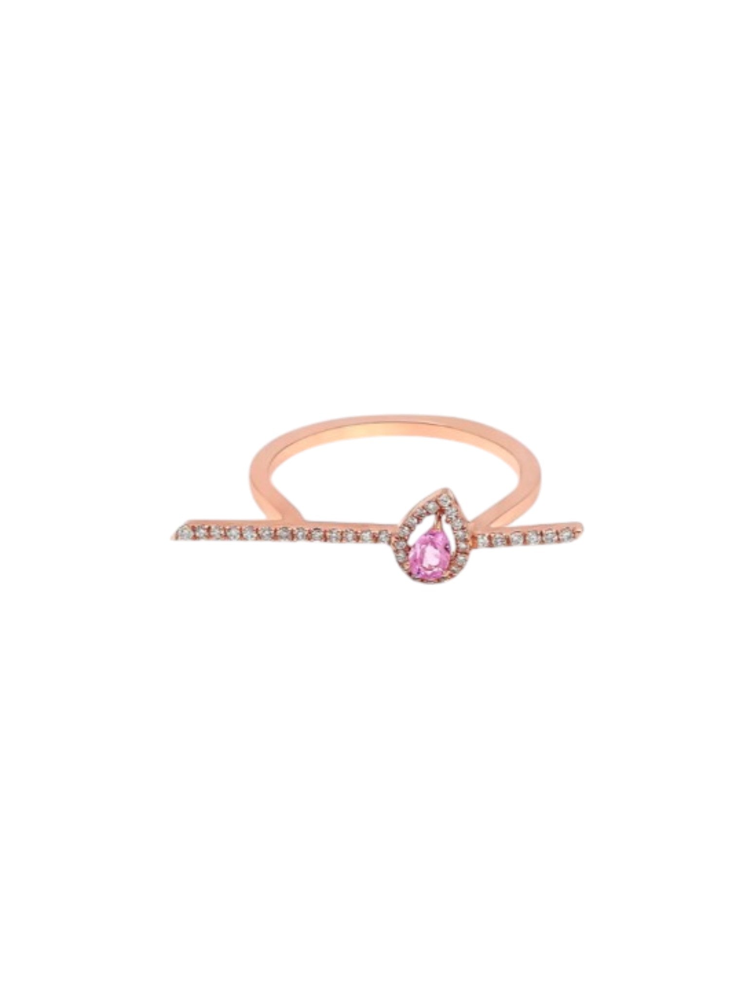 925 Sterling Silver Rose Gold Plated Light Weight CZ Stone Locked Corner Ring For Women By Kesardeep