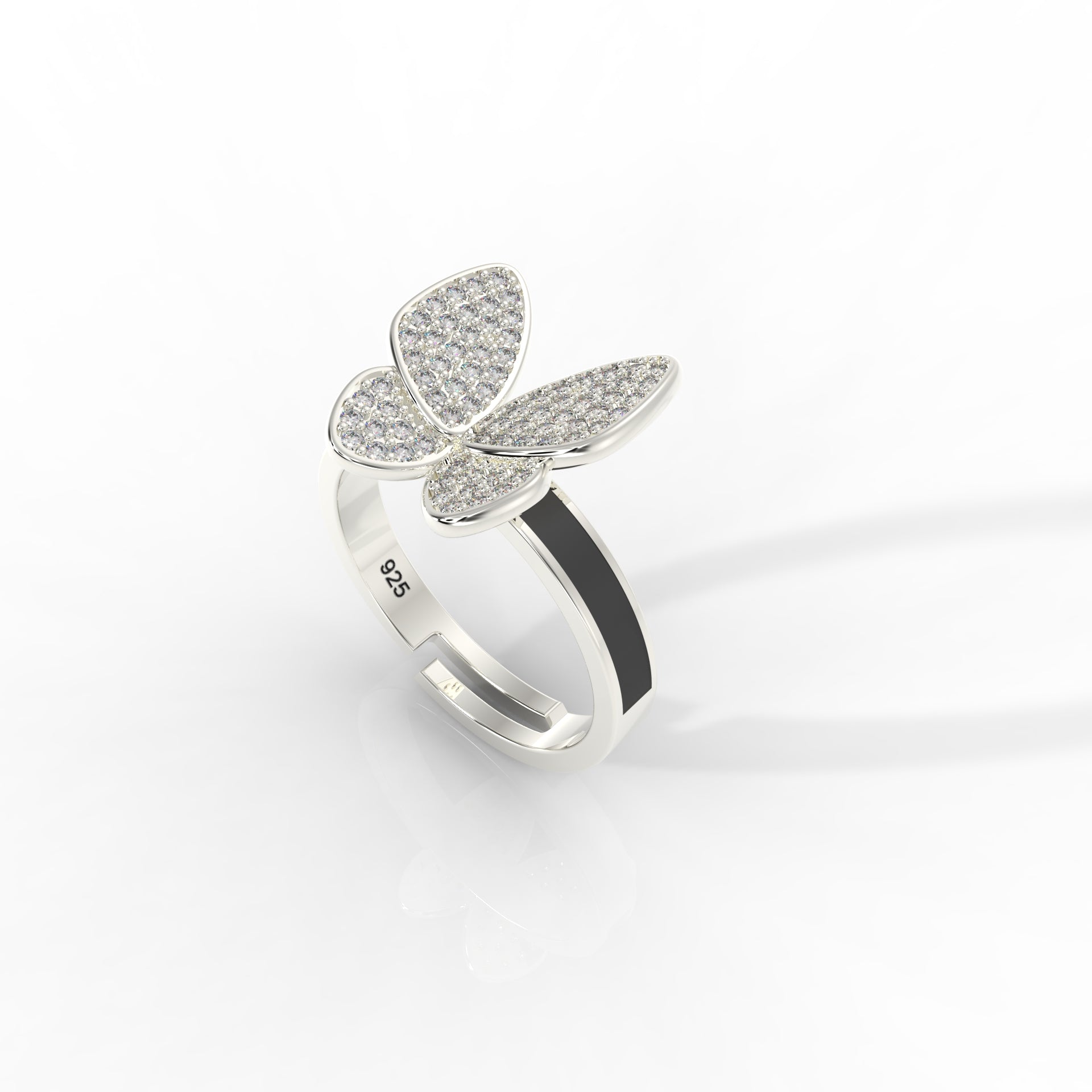 Women Personalized Butterfly Ring White Gold Plated- Hallmarked 925 Sterling Silver White Gold