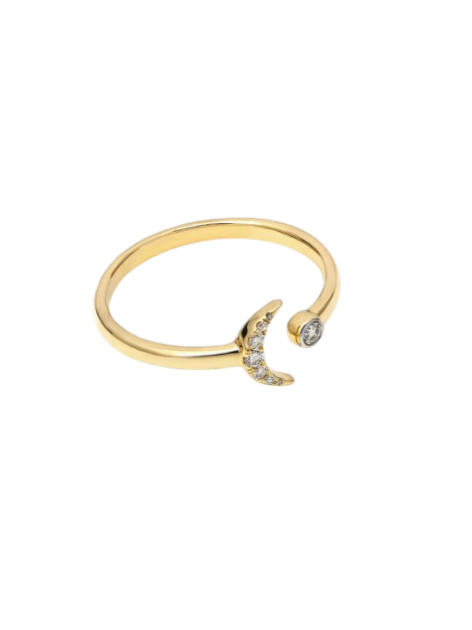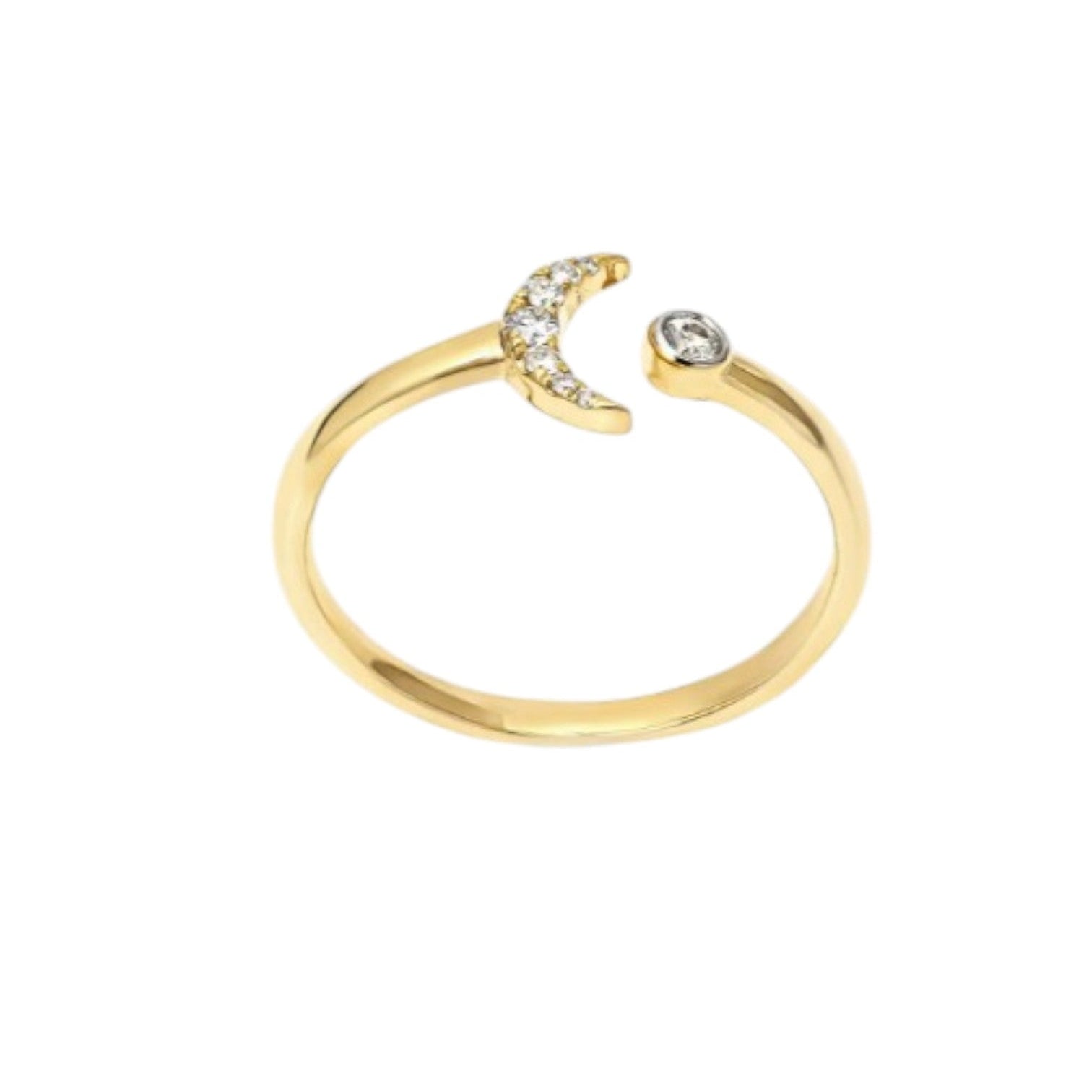925 Sterling Silver Gold Plated Light Weight CZ Stone Moonlit Ring For Women By Kesardeep