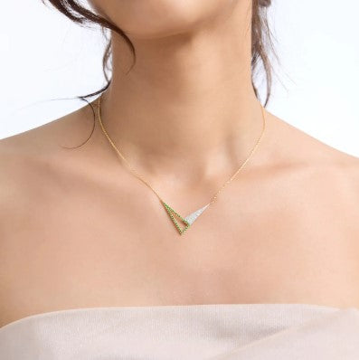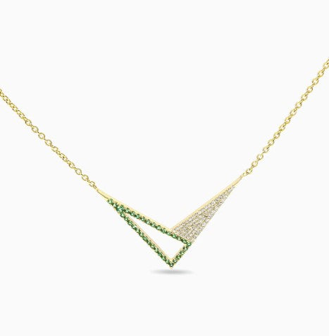 925 Sterling Silver Minimalist Design CZ Stones Gold Plated Pendant With Chain For Women By Kesardeep