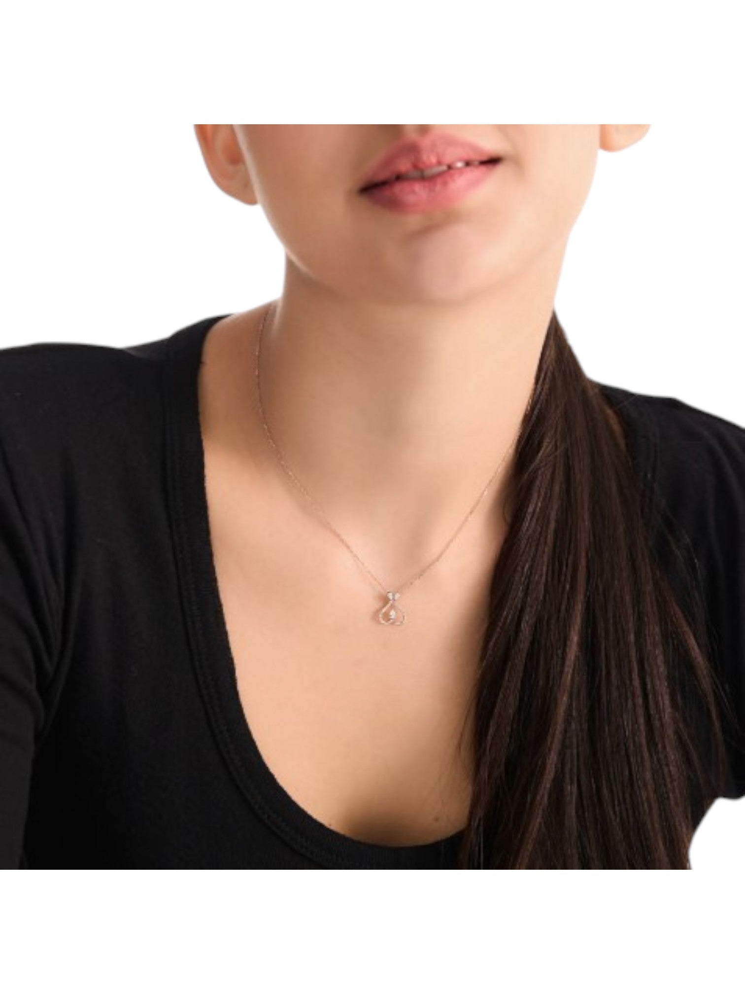 925 Sterling Silver Love Design CZ Stones Rose Gold Plated Pendant With Chain For Women By Kesardeep