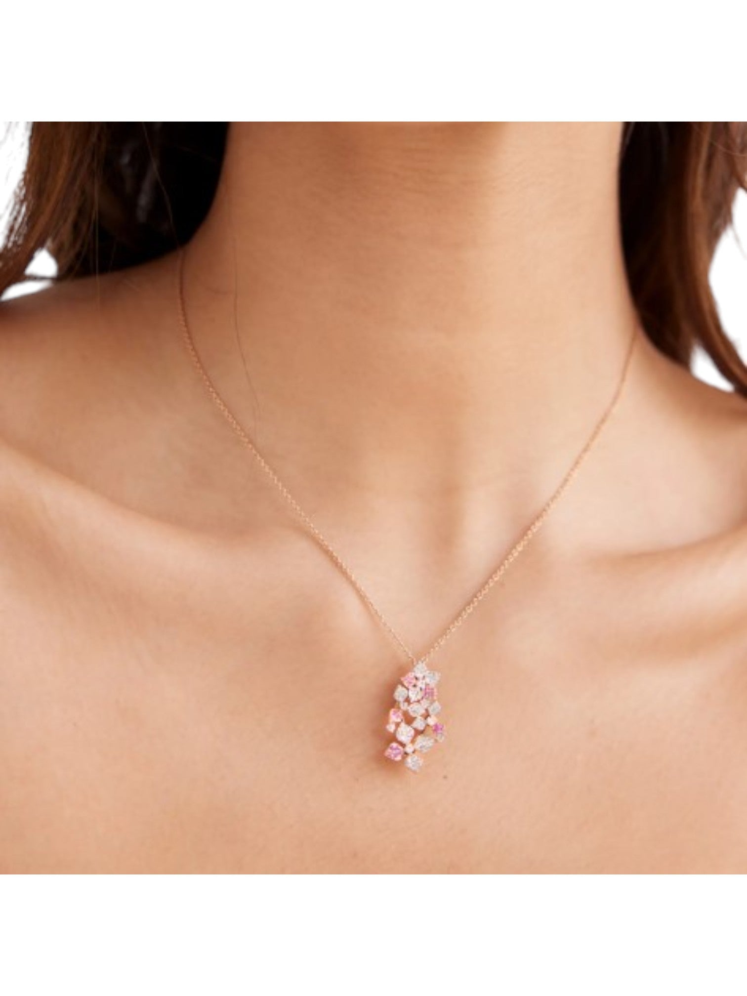 925 Sterling Silver Elegant Flower Design CZ Stones Rose Gold Plated Pendant With Chain For Women Kesardeep