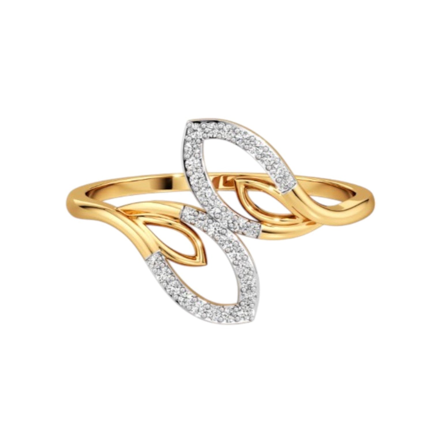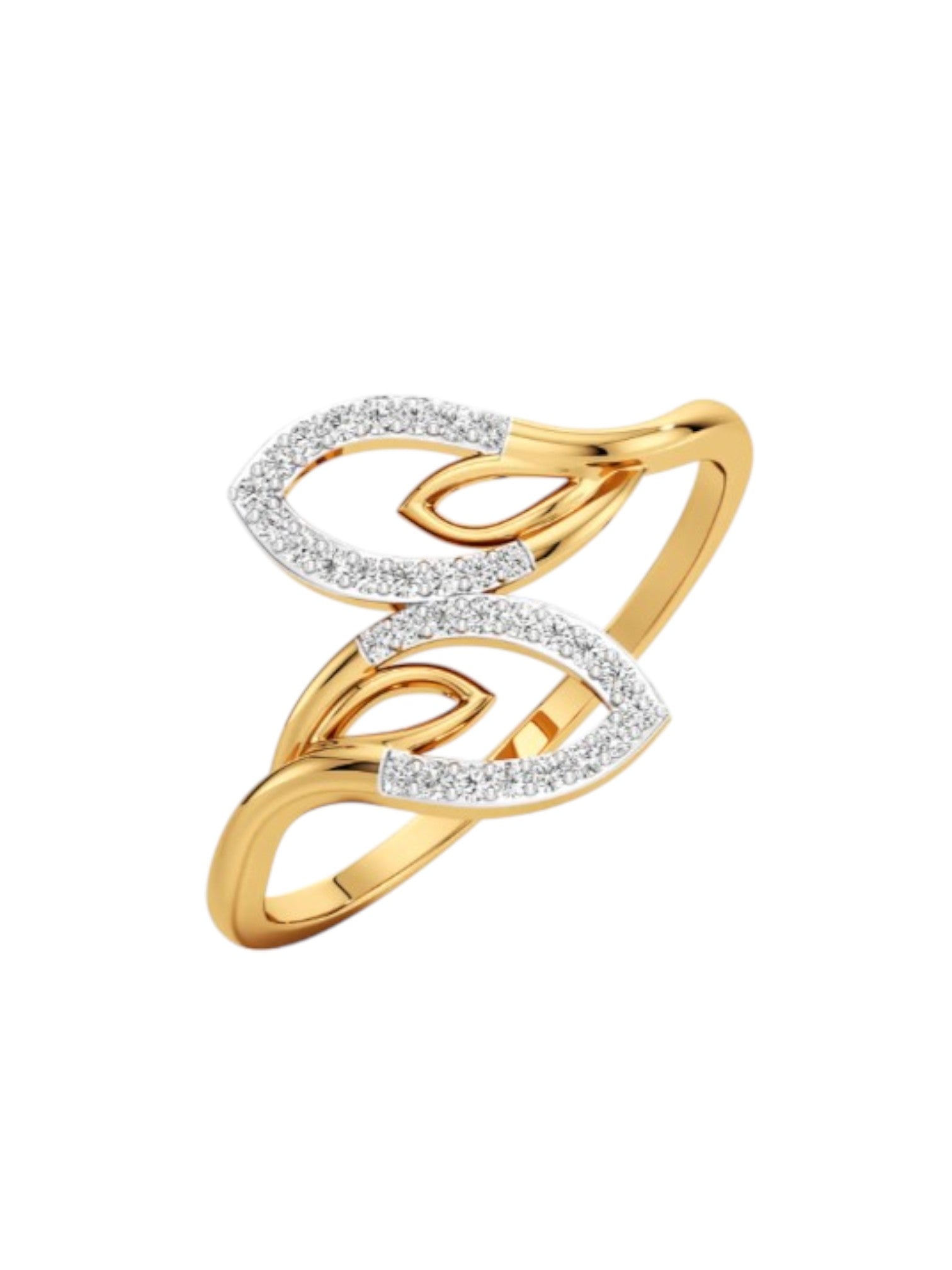 925 Sterling Silver Gold Plated Light Weight CZ Stone Leaf Ring For Women By Kesardeep