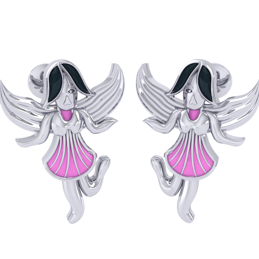 92.5 Sterling Silver Light Weight Silver And Gold Plated Angel Doll Enamelled Studs For Kids By Kesardeep