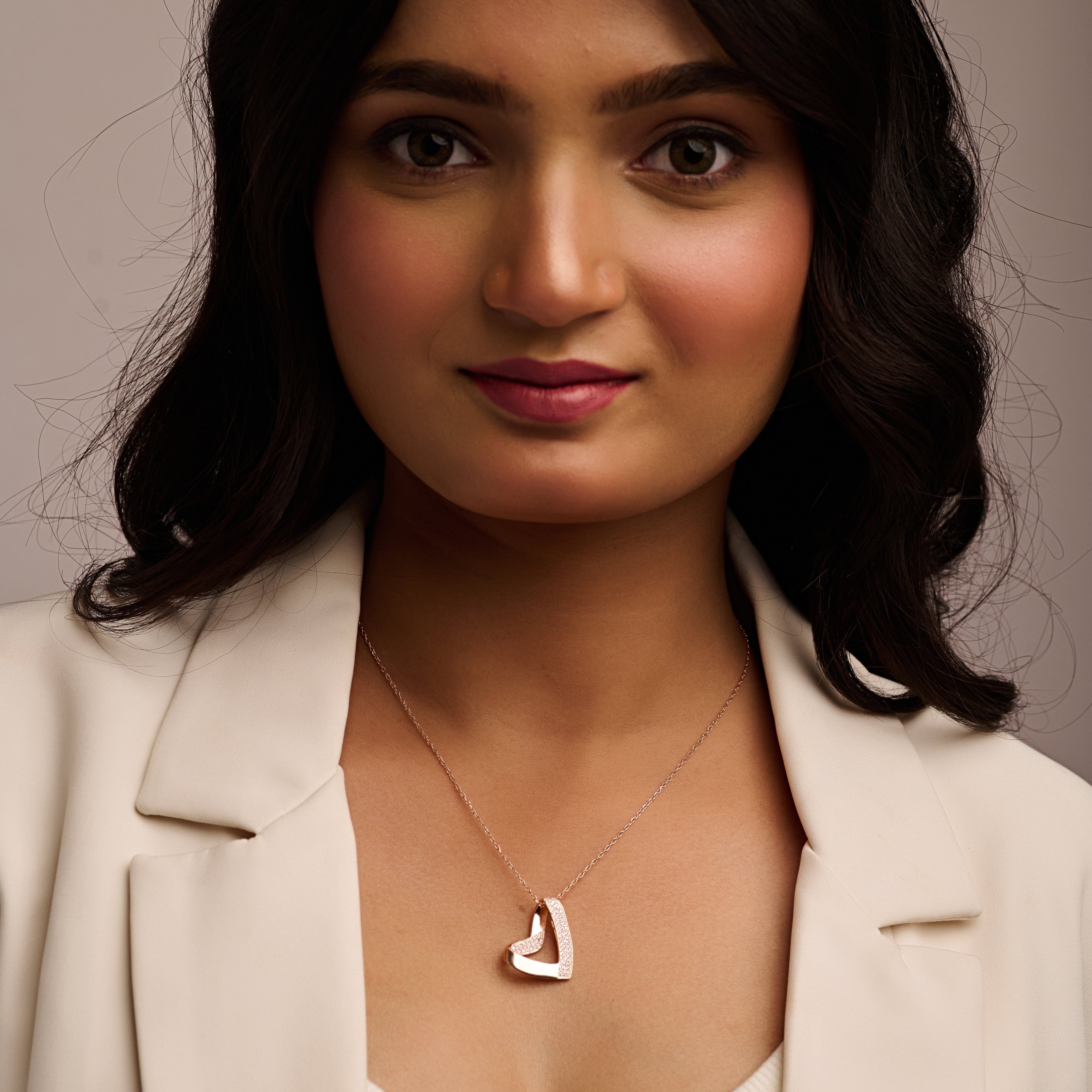 925 Sterling Silver Elegant Design Rose Gold Plated Pendant With Chain For Women By Kesardeep